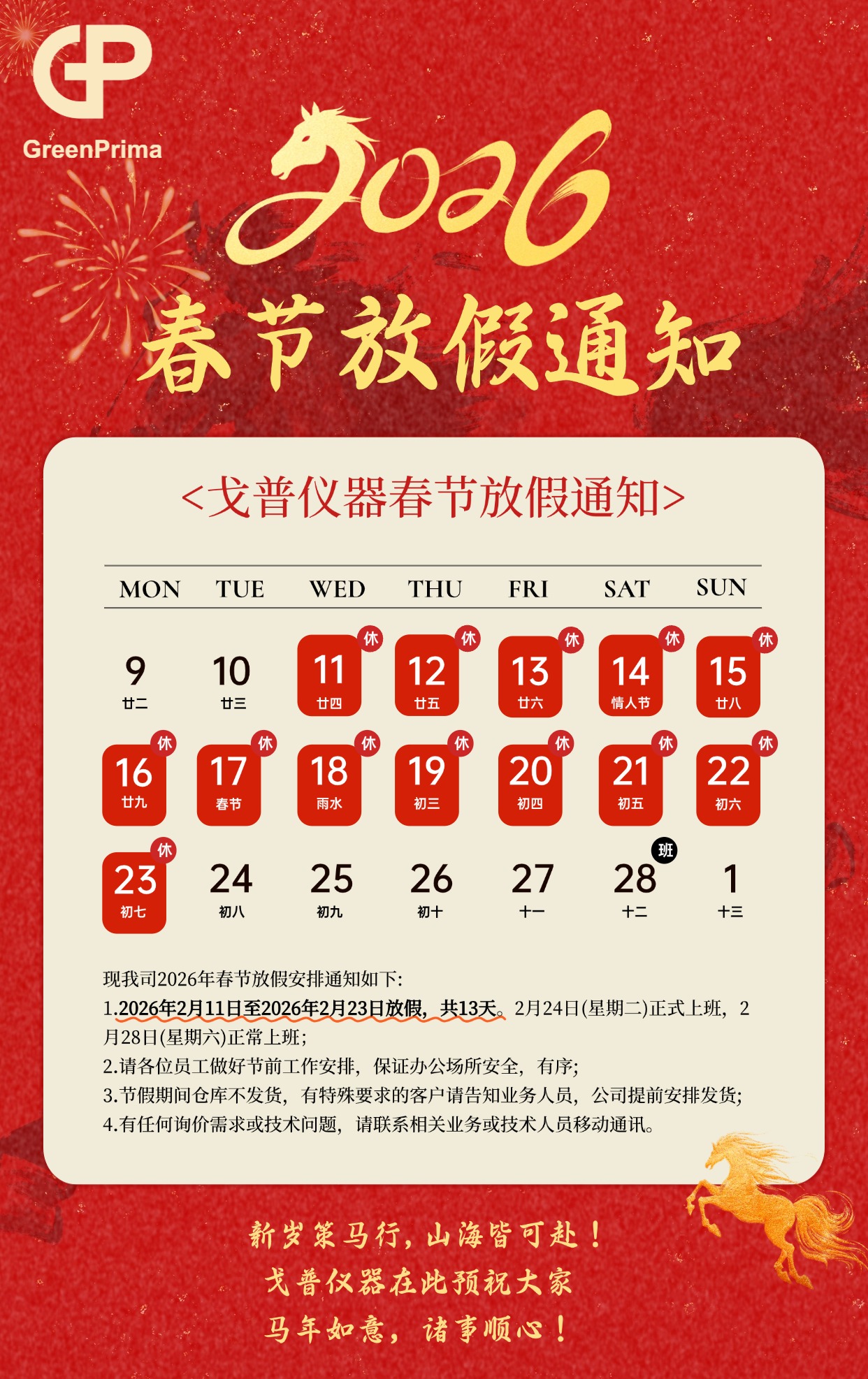 2026年戈普儀器春節放假通知